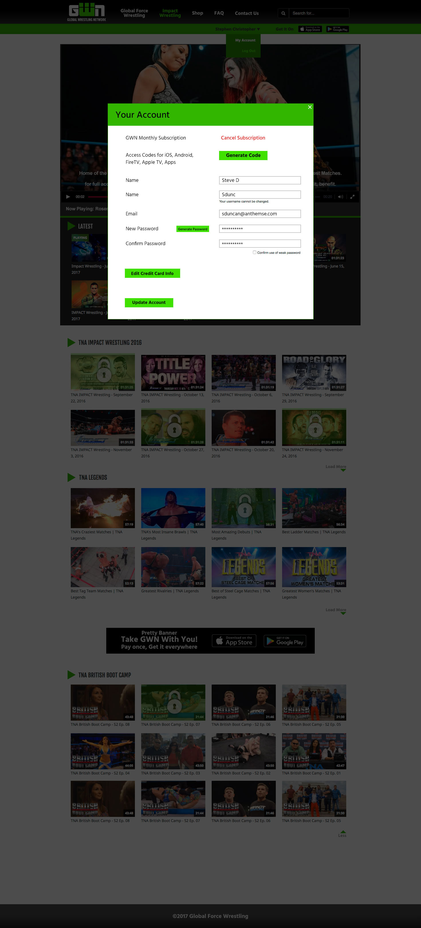 GWN (Impact Wrestling) Mobile App, Video portal and a few banner ads.